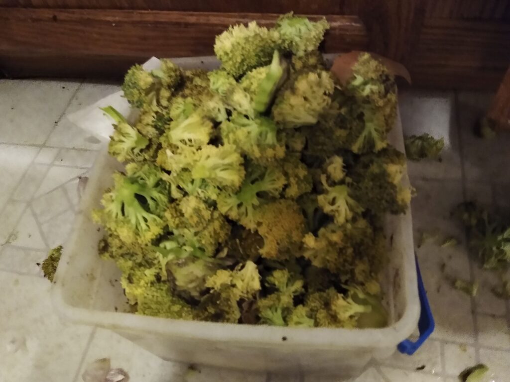 The battle against not wasting food is, unfortunately, a common one around here, and we don’t always win. Just before Thanksgiving, Emily asked me to buy broccoli so she could make beef and broccoli. Well, that broccoli didn’t fit in the fridge until all of the Thanksgiving leftovers were eaten, and by then the broccoli had aged a bit.