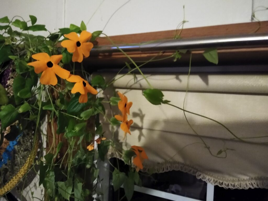 In other news, the black-eyed susan vine I planted back in February has been blooming! Its a beautiful splash of continuously blooming flowers to remind us that spring will come!